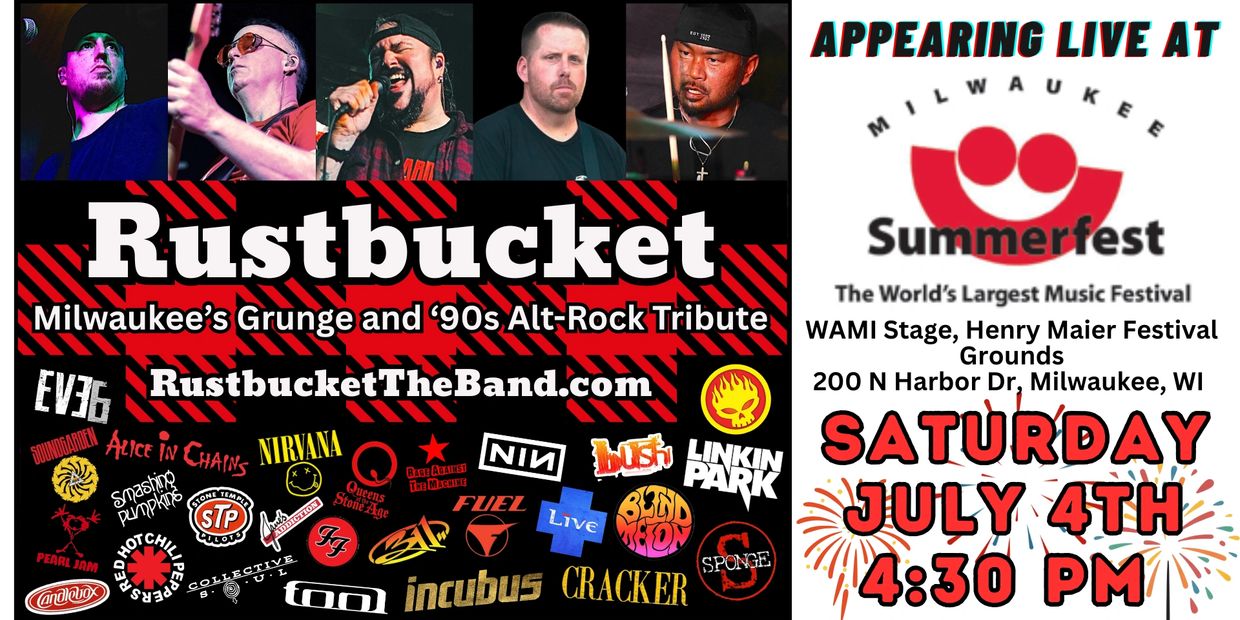 We can finally let the cat out of the bag: Rustbucket will be hitting the WAMI Artists Alley stage for our Summerfest debut on the last day of the run — 4th of July 2026! That's right, we're not just playing the Big Gig. We're closing out the world's biggest music festival on one of the biggest party days of the year! You do NOT wanna miss this one! SEE YOU THERE!